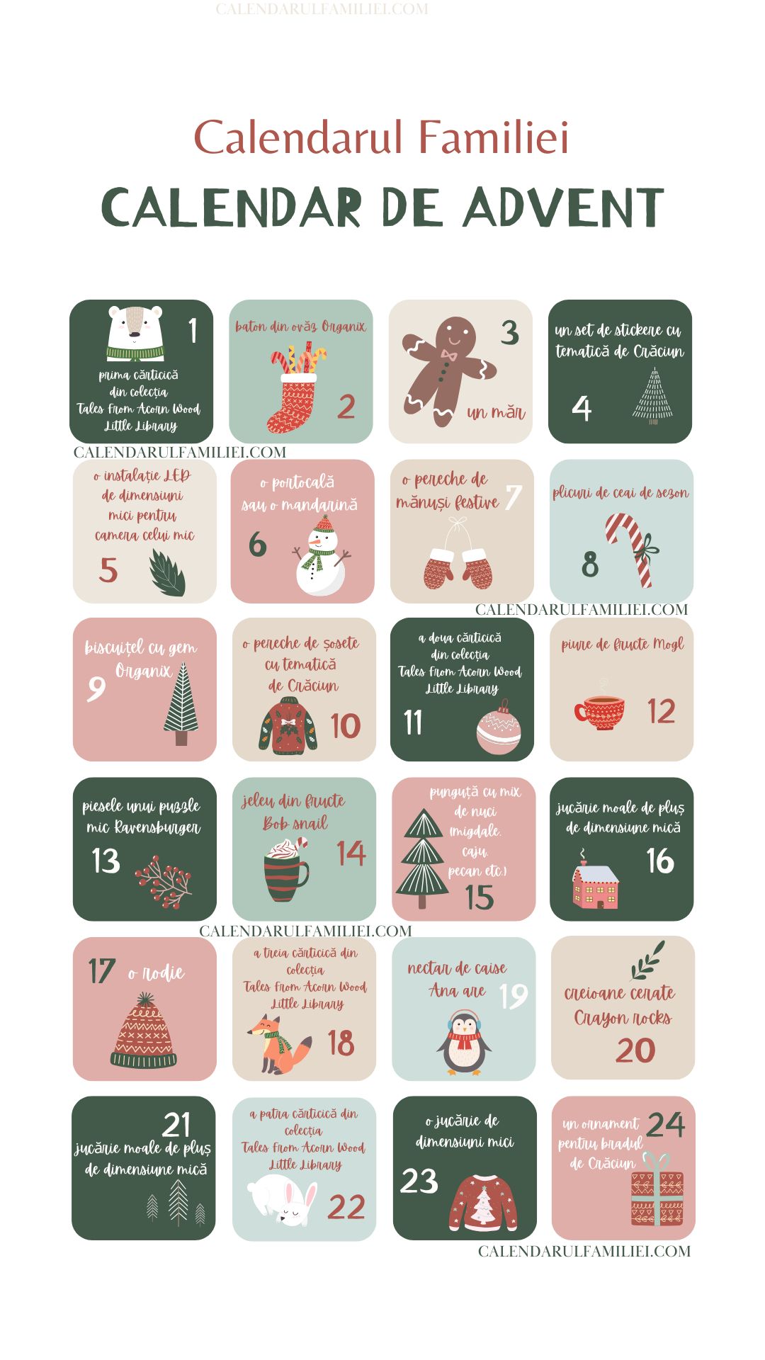 Calendarul de advent 2024 conține: