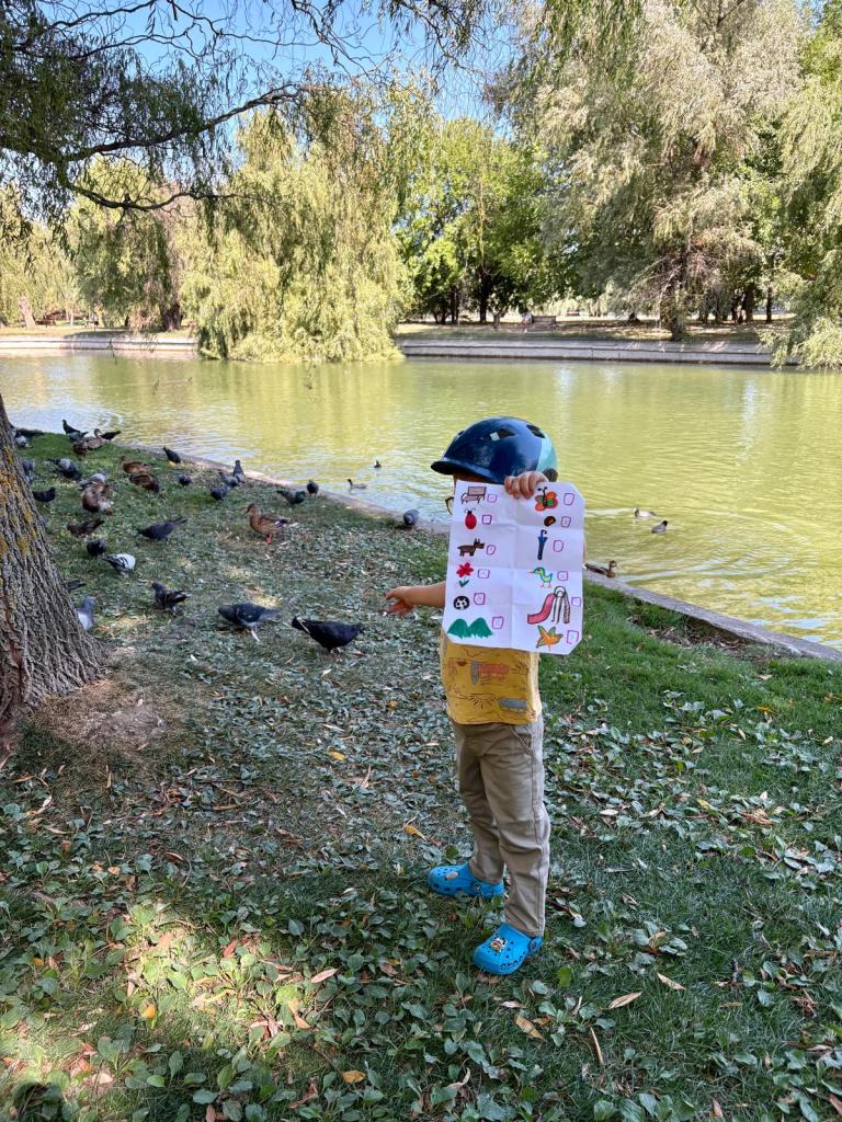 Pentru a marca începutul acestui nou sezon, am organizat o vânătoare de comori în parc, practic am devenit pentru o zi exploratori adevărați așa cum s-a exprimat Eric. Înarmați cu mult entuziasm, am pornit în căutarea „comorilor” de toamnă: castane, frunze colorate, chiar și o umbrelă 🙂 Pe lângă distracția garantată, fiecare pas prin natură ne-a făcut atenți la cât de multe schimbări aduce toamna atât afară cât și în viața de zi cu zi (trebuie să luăm ceva mai multe haine pe noi).